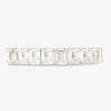 The Emirates Emerald Diamond Band exudes elegance. This is one of our most popular bands for a reason! The shape of eleven emerald cut diamonds nestled in gold creates a glittering trail around the finger that cant be ignored. Stacked or solitaire, this piece remains breathtaking. The Emirates band is double the carat weight of our Evelyn Emerald Band.