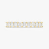The Evelyn Emerald Diamond Band exudes elegance. This is one of our most popular bands for a reason! The shape of emerald cut diamonds nestled in gold creates a glittering trail around the finger that can’t be ignored. Stacked or solitaire, this piece remains breathtaking. If looking for a little more sparkle, be sure to check out our Emirates Emerald Band, as it is double the carat weight of our Evelyn Emerald Band.