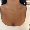 Our Posie Charlie Floating Diamond Cross Necklace is the smallest of the Charlie Cloud Family and has a delicate and charming look! A cross setting houses round brilliant cut diamonds that dance along the neck to create a beautiful but subtle silhouette. This exquisite and elegant design is able to shine alone or can be perfectly layered with another dainty necklace. You’ll love to pair this with a band from the Charlie Cloud family!